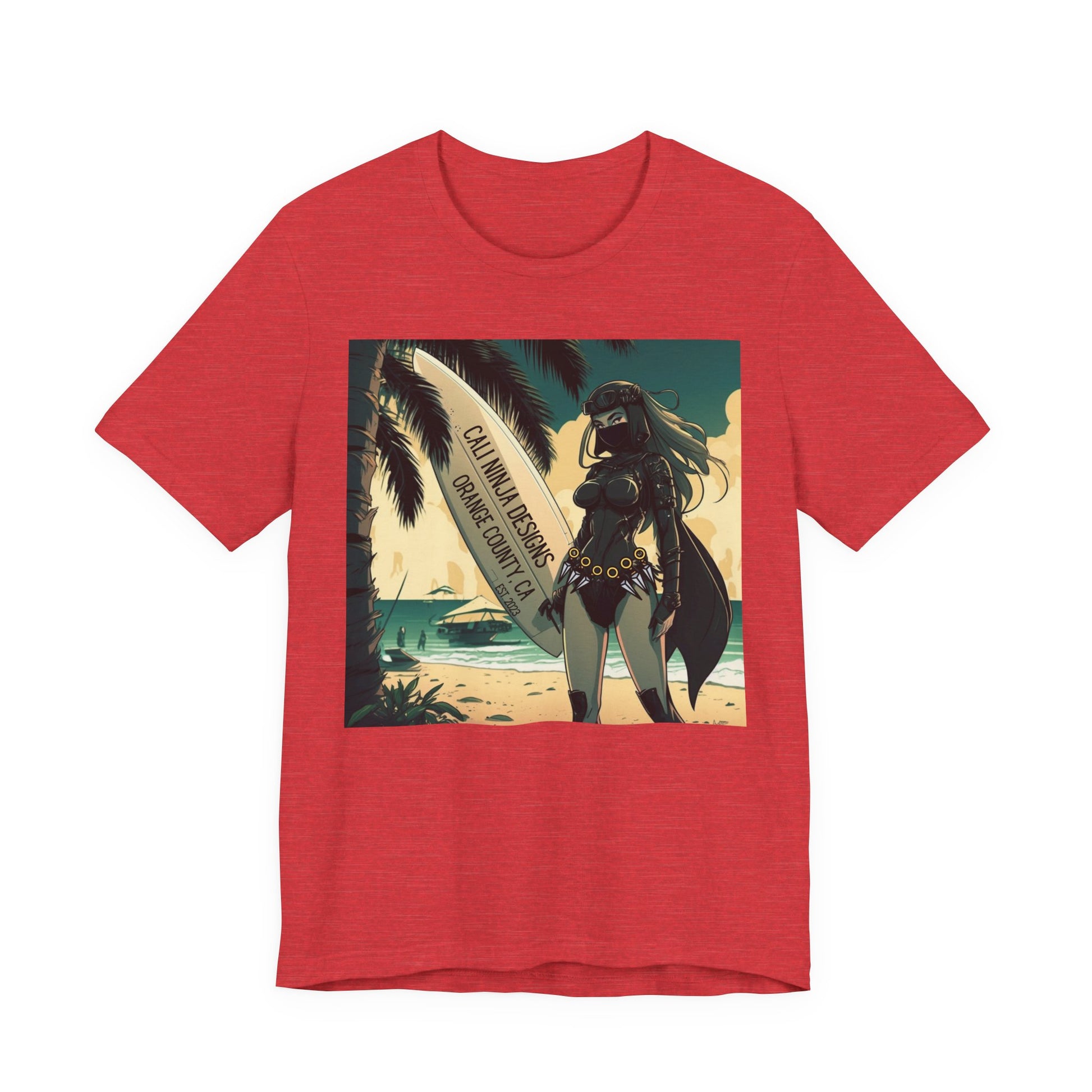 Beach Kunoichi Tee – Retro Hawaiian Surfboard Graphic T-Shirt